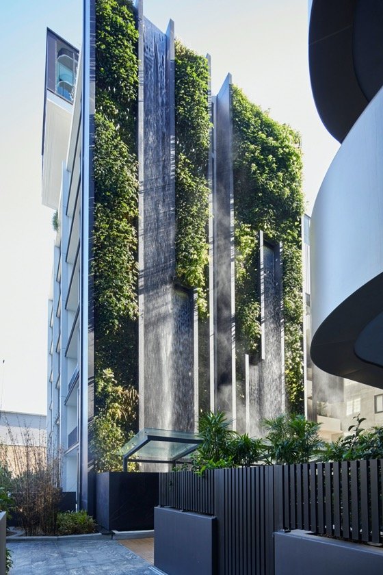 Waterfall by Crown Group을 방문해보지 못했던 분들에게 본 이벤트는 마치 5성급 휴양지에 입성하는 것과 같은 느낌을 받으실 수 있습니다. 본 건물의 입구부터 탁 트이고 굽이굽이 우거진 대나무 터널을 통과하여 사방이 완전히 둘러싸여진 비밀스러운 공간에의 루프탑 캐노피를 만나볼 수 있습니다. 녹색으로 우거진 터널을 통과하면 즉각적으로 차분해지는 느낌을 받을 수 있습니다. 즉, 마음을 어루만지는 경험이라고 할 수 있죠. 건물 전체에서 이러한 분위기를 풍기는데, 무성한 녹음과 열대 컨셉의 조경 설치로 바쁜 일상에서 벗어난 듯한 느낌을 받을 수 있습니다. 이 프라이빗한 주거 공간은 CBD에서 불과 5km 거리에 있습니다.