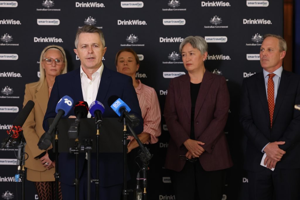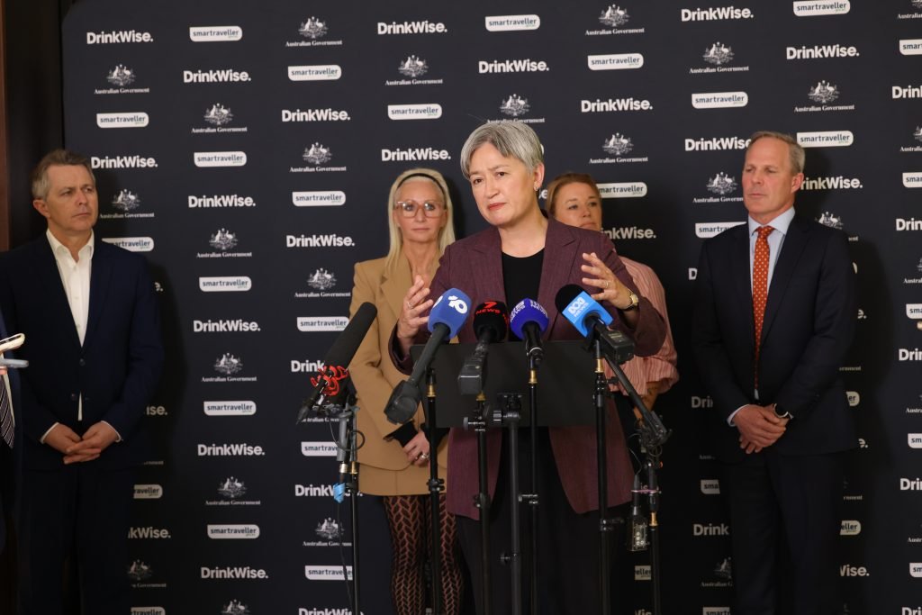 Senator the Hon Penny Wong, Minister for Foreign Affairs at the DrinkWise x Smartraveller – Schoolies Launch at Melbourne Airport on Tuesday 18 November 2025.