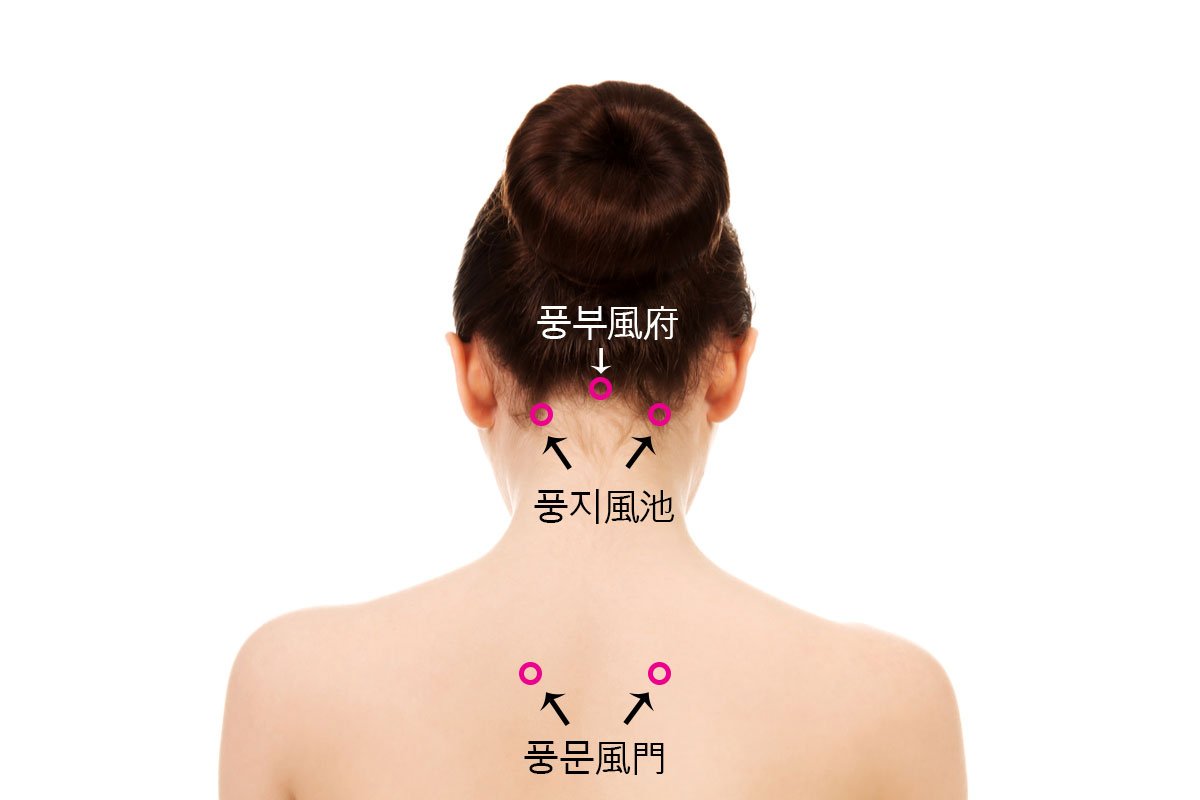 풍한이 신체에 침입하지 못하게 하는 것도 중요합니다. 경혈(침자리)의 이름을 찾아 보면 풍風이라는 글자가 붙은 것들이 있습니다. 풍지風池, 풍부風府, 풍문風門 혈이 대표적인 혈들입니다. 이 혈들은 풍한이 들어오지 못하게 방한에 주의를 기울여야 합니다. 머플러나 숄 등을 이용해서 방한防寒합니다.