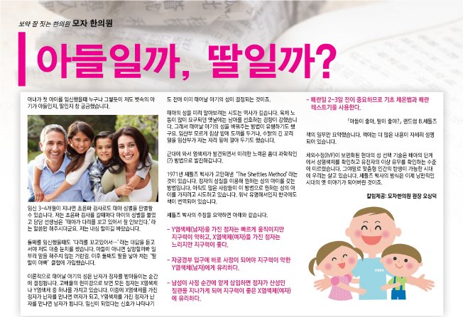 1971년 셰틀즈 박사가 고안해낸 ‘The Shettles Method’라는 것이 있습니다. 정자의 성질을 이용해 원하는 성의 아이를 갖는 방법입니다. 아직도 많은 사람들이 이 방법으로 원하는 성의 아이를 가지려고 시도하고 있습니다. 워낙 유명해서인지 한국에도 책이 번역되어 있습니다.