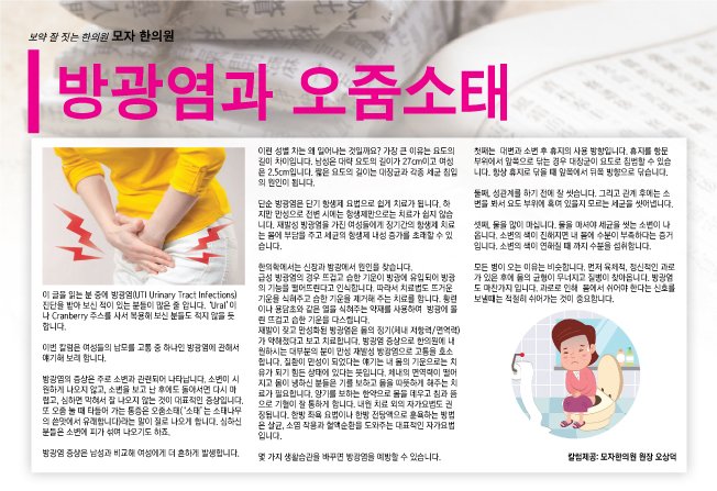 방광염과 오줌소태_모자 한의원 한방칼럼