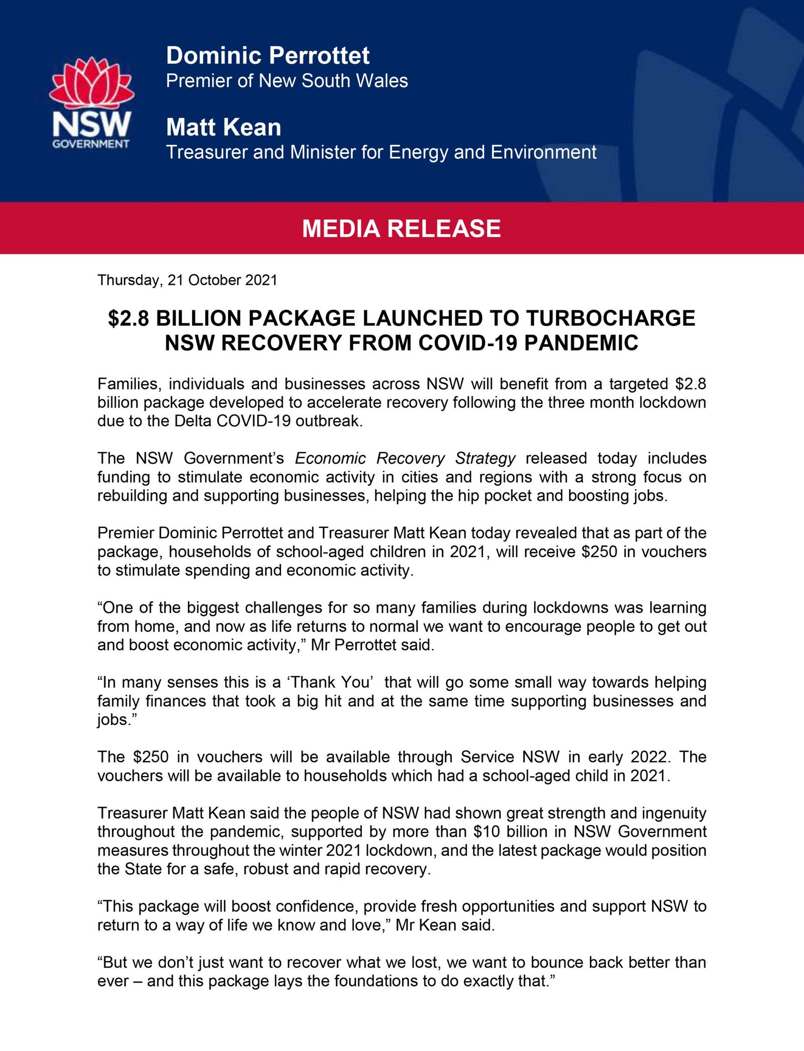 For more information and to view the full strategy visit: https://www.nsw.gov.au/covid-19/economic-recovery-strategy