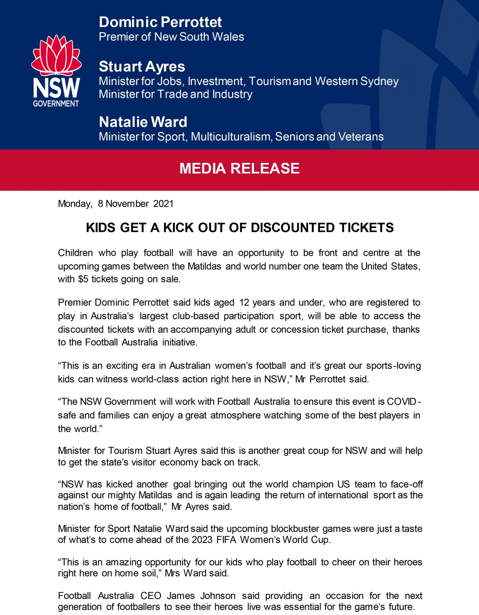 / Dominic Perrottet Stuart Ayres Natalie Ward med rel – Kids get a kick out of discounted tickets