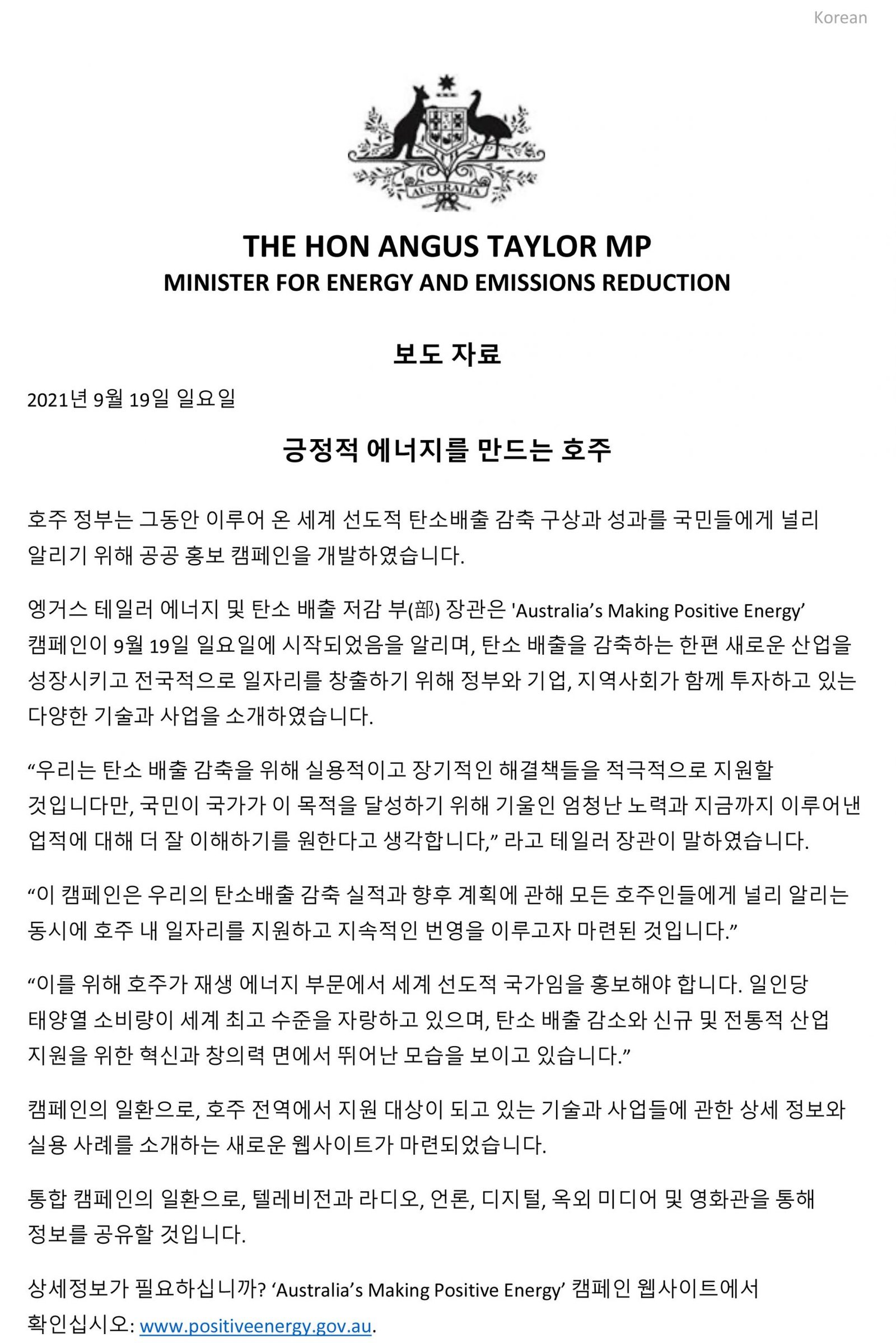 긍정적 에너지를 만드는 호주_Federal Government’s Emissions Reduction Communications Campaign