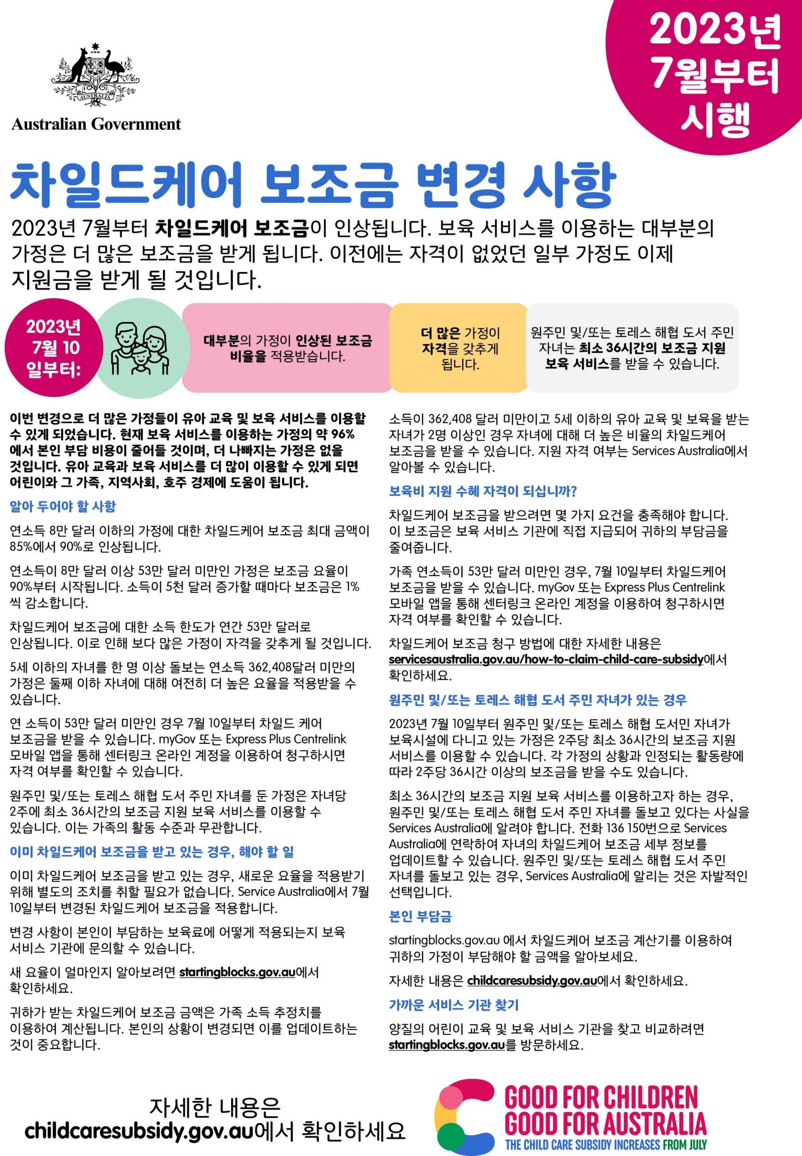 Home / 호주정보 / 2023년 7월부터 차일드케어 보조금 인상