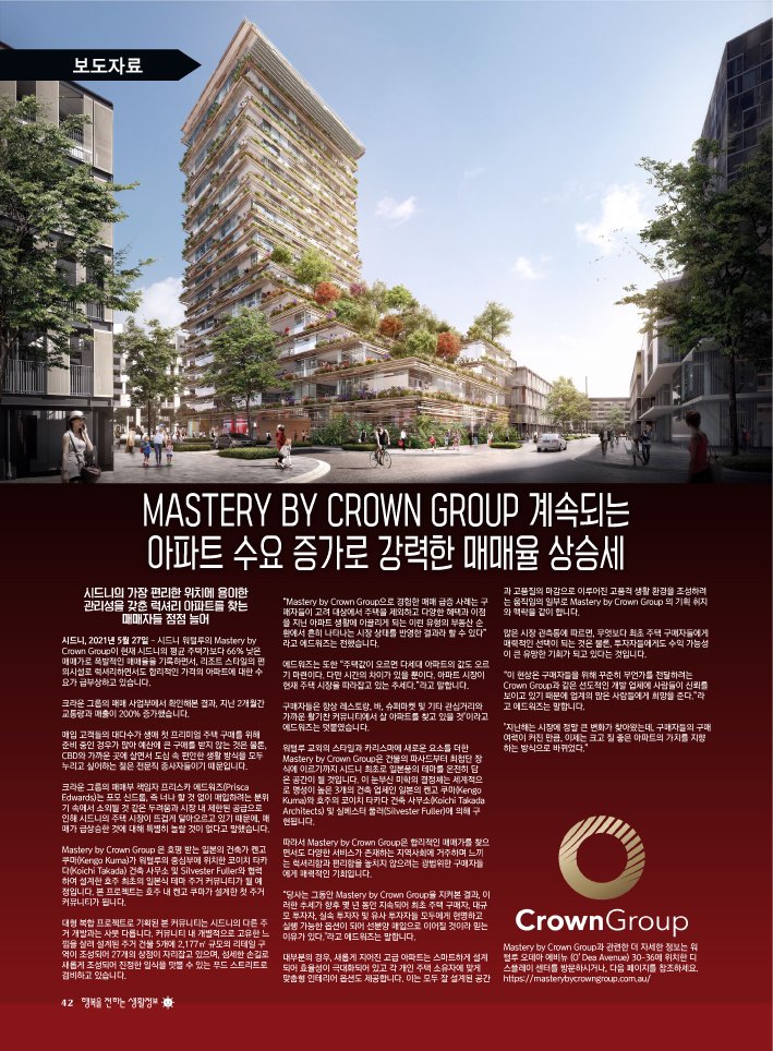 Crown Group_ MASTERY BY CROWN GROUP 계속되는 아파트 수요 증가로 강력한 매매율 상승세
