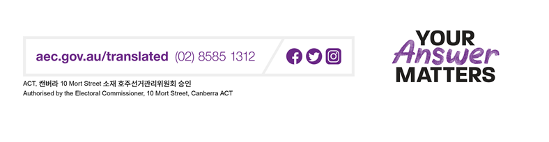 국민투표 등록 및 투표에 대한 자세한 정보는 aec.gov.au/translated 를 방문하거나 1300 720 468으로 전화하여 원하는 언어로 확인하실 수 있습니다.